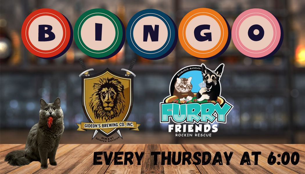 Join us for BINGO at Gideon's Brewing Company!!! Every Thursday, starts at 6pm, cash only. Lots of fun prizes!!![]()